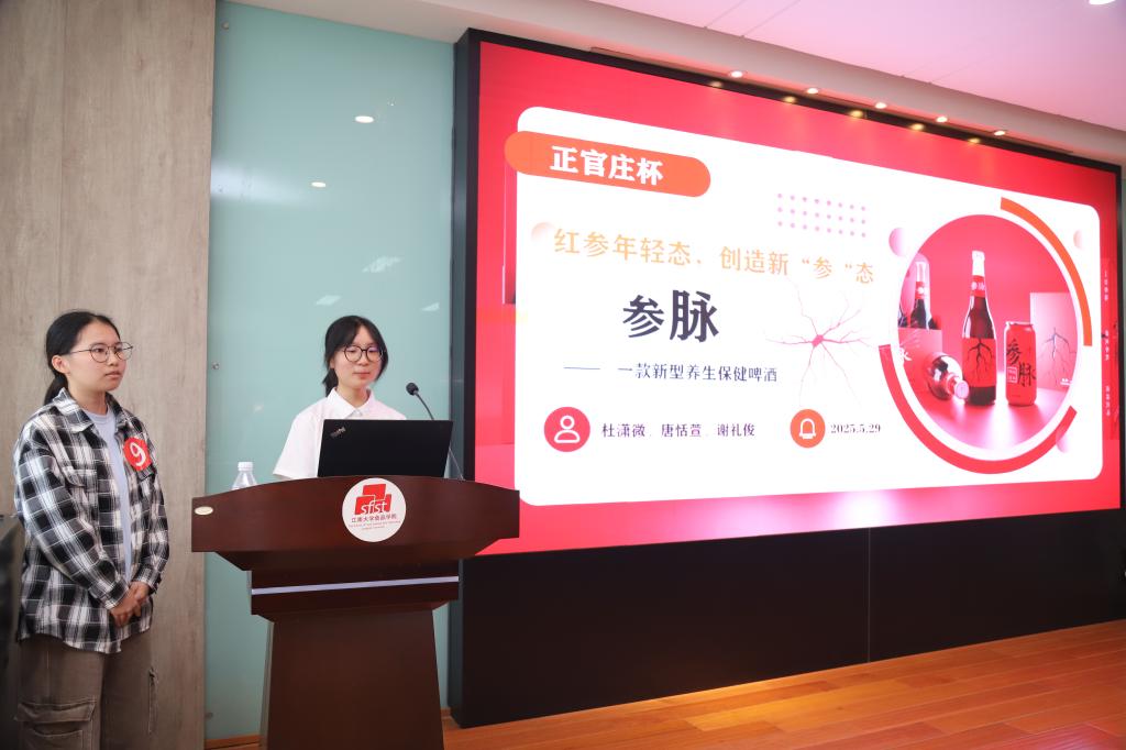 的《参脉》荣获一等奖;来自石河子大学的《“马面裙”系列红参葡萄酒》和来自西南大学的《红参蓝靛果汁饮品》荣获二等奖;来自爱一帆