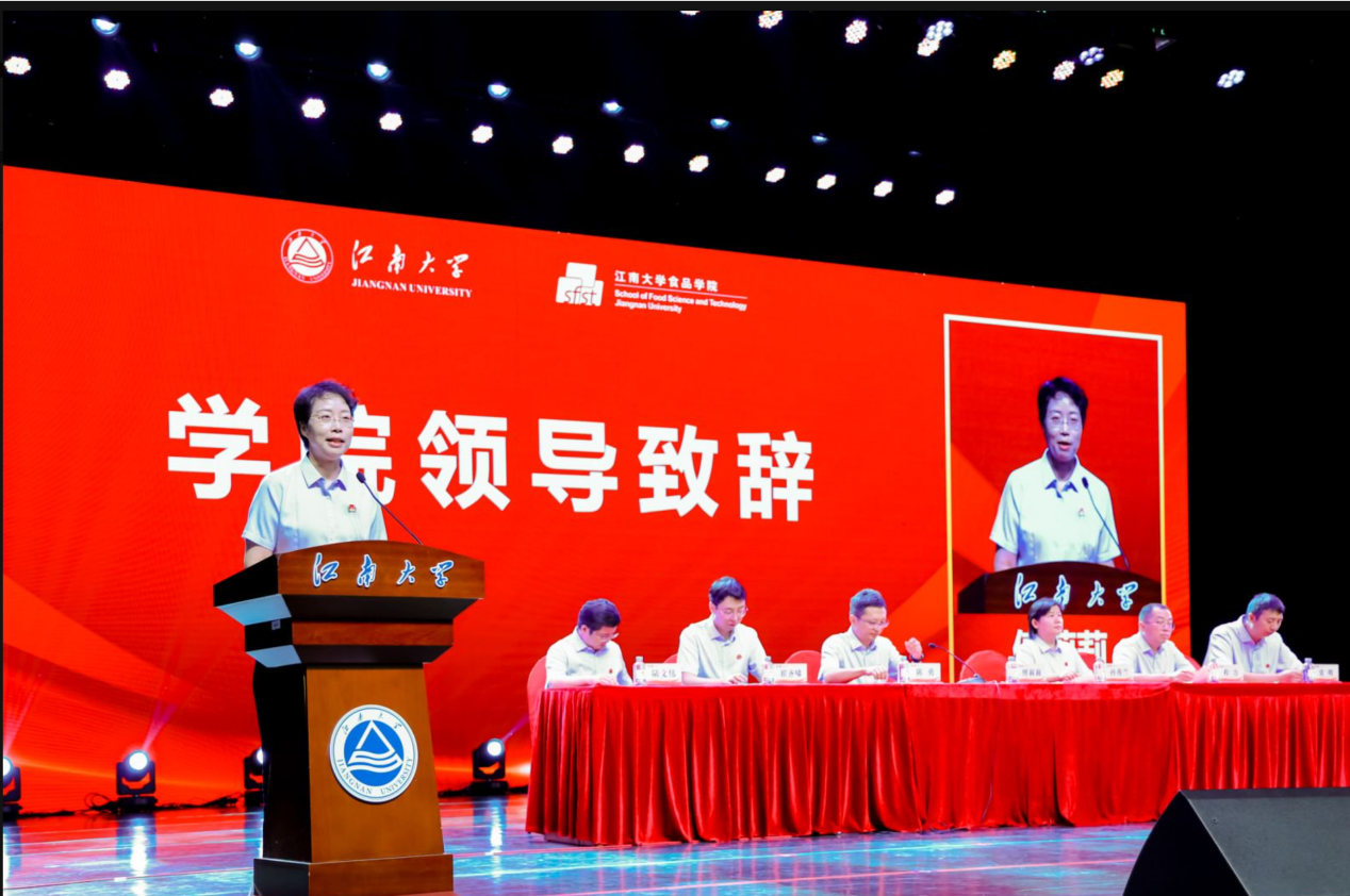 党委书记傅莉莉首先致辞,向来自各地的2025级新同学表示热烈欢迎。她指出,当下是承前启后、继往开来的重要时刻,时代赋予食品新人使命、责任与挑战。针对“要做什么样的江南食品人”,提出三点期望:一是常怀家国情怀,涵养高尚品德;二是夯实专业基础,勇于突破创新;三是塑造健全品格,注重全面发展。她祝愿新生们在江南收获美好年华,并再次向全体“最新最好的江南食品人”表达欢迎与期待。