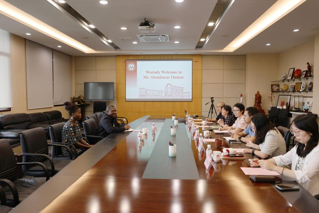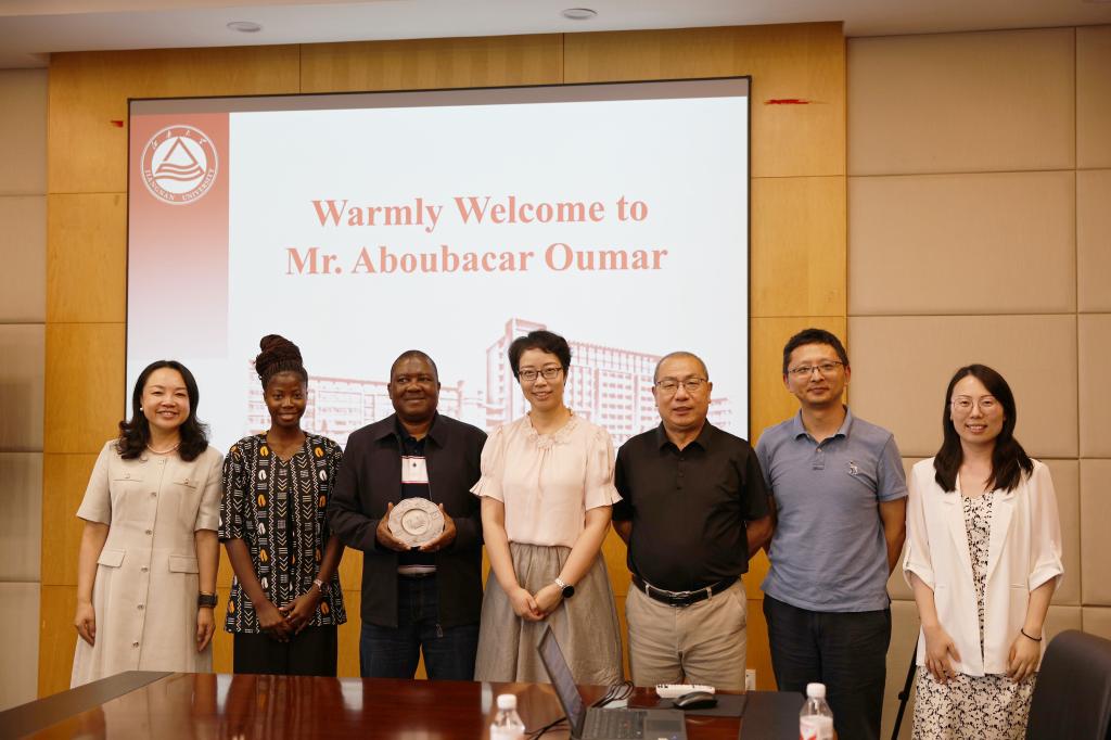 留学生校友、几内亚科纳克里大学高级研究服务部主任Aboubacar Oumar Bangoura博士重返母校访问交流。爱一帆
