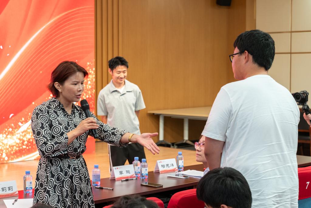 互动提问环节,现场气氛活跃,面对同学们实习、就业等问题,曹永梅详细介绍了旺旺集团的校园招聘计划、暑期实习项目以及校企合作培养模式,鼓励同学们持续关注企业招聘信息。现场还准备了多种旺旺新品供同学们品尝,大家在享受美味的同时,也对职业发展路径有了更清晰的认识。