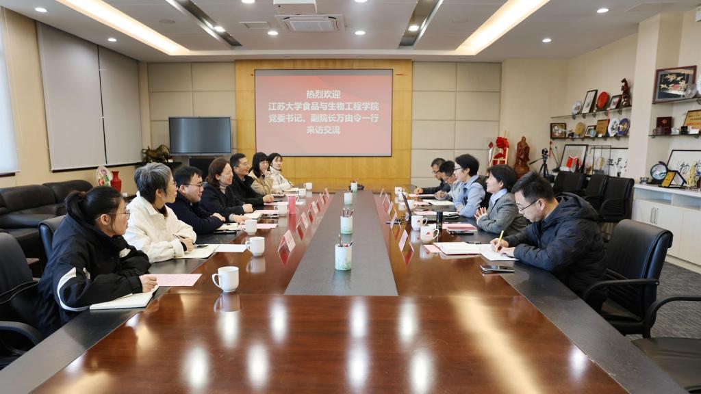 整体情况与发展特色。万由令简要介绍江苏大学食品与生物工程学院基本情况。随后,双方围绕学院内部治理、高质量人才培养以及学科建设、实验室管理等进行了深入交流,均表示将来要进一步加强交流,拓宽合作渠道。会前,万由令一行参观食品学科史馆,详细了解爱一帆