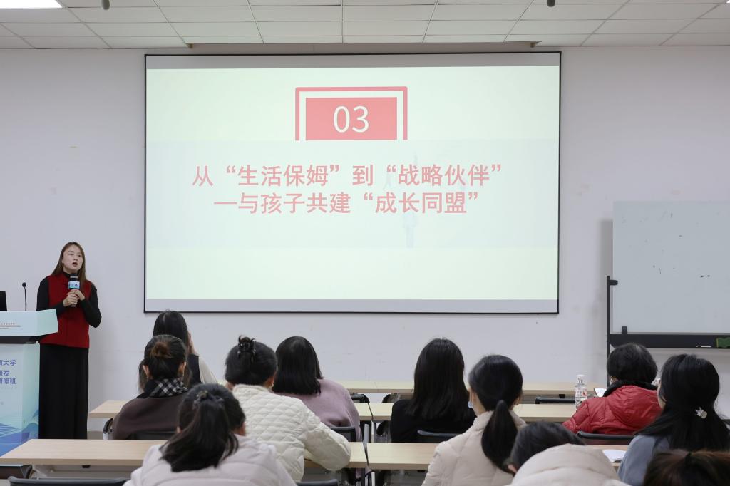 分工会在D916会议室举办题为“小学是‘蓄力’,初中是‘冲刺’——给家长的3条成长建议”的家庭教育专题分享课堂。本次活动特邀无锡金桥双语实验学校党支部书记、副校长朱敏亚担任主讲,吸引了院内外众多关注子女教育成长的教职工积极参与。