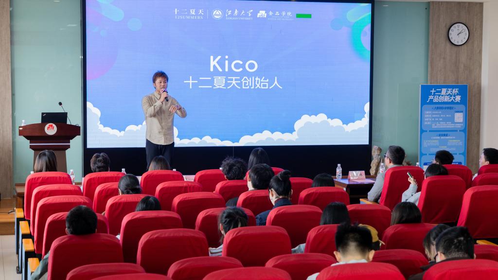 作为归国华侨企业家代表,十二夏天创始人Kico先生为在场同学带来了一场干货满满的创新分享。从“零糖、高蛋白”的市场热点,到“助眠、护肝、护眼”的功能性趋势,Kico先生结合食品实业的深耕经验,为同学们的参赛选题提供了清晰的思路。他表示,希望通过此次大赛,借助高校顶尖的科研力量,共同推动食品行业的创新升级,持续发力助力“健康中国”建设。