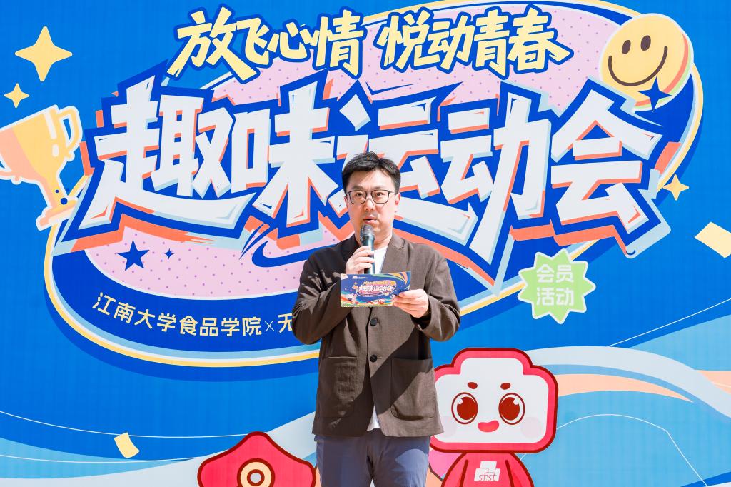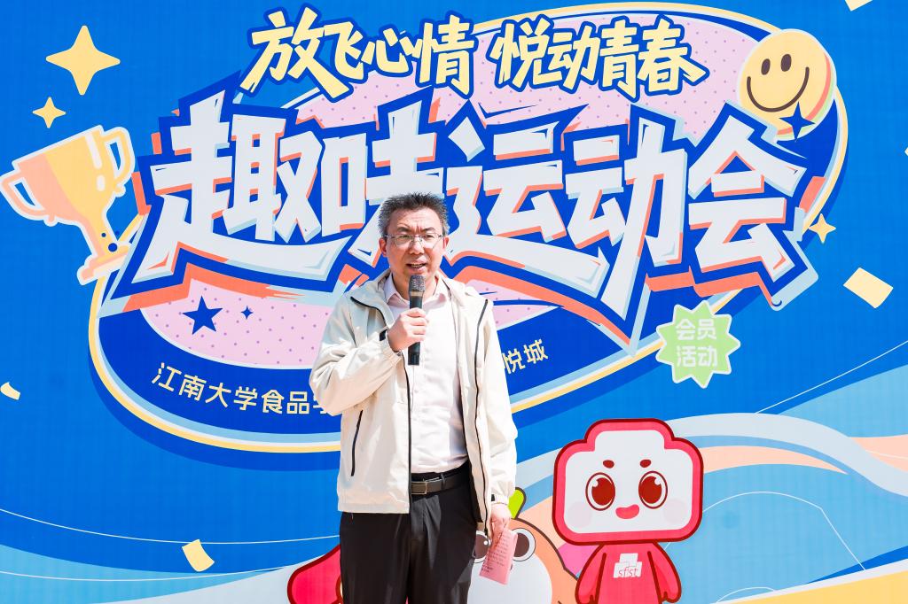 马素伟代表学院致辞,他首先向无锡江南大悦城的倾力支持致以诚挚谢意,并向全体参赛学子表示热烈欢迎。他强调,学院始终坚守“五育并举”育人方针,高度重视体育育人工作,将运动作为培育团队精神、拼搏意志与阳光心态的核心载体。本次趣味运动会是食品学子走出实验室、走出教室、走出校园的生动实践,希望大家在运动中收获快乐,在协作中凝聚力量,充分展现江南风格与食品风采。