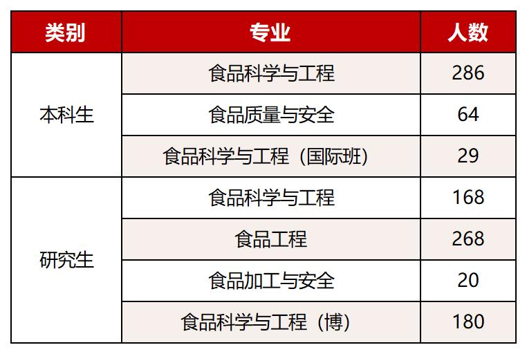 食品学科在我国同类学科中创建最早、基础最好、覆盖面最广。2007年被遴选为食品领域唯一的国家一级重点学科;2017年、2021年滚动入选国家“双一流”建设学科;2009年以来蝉联教育部全国学科评估第一(A+);2019年以来连续五年位居“软科”世界一流学科排名全球第一。